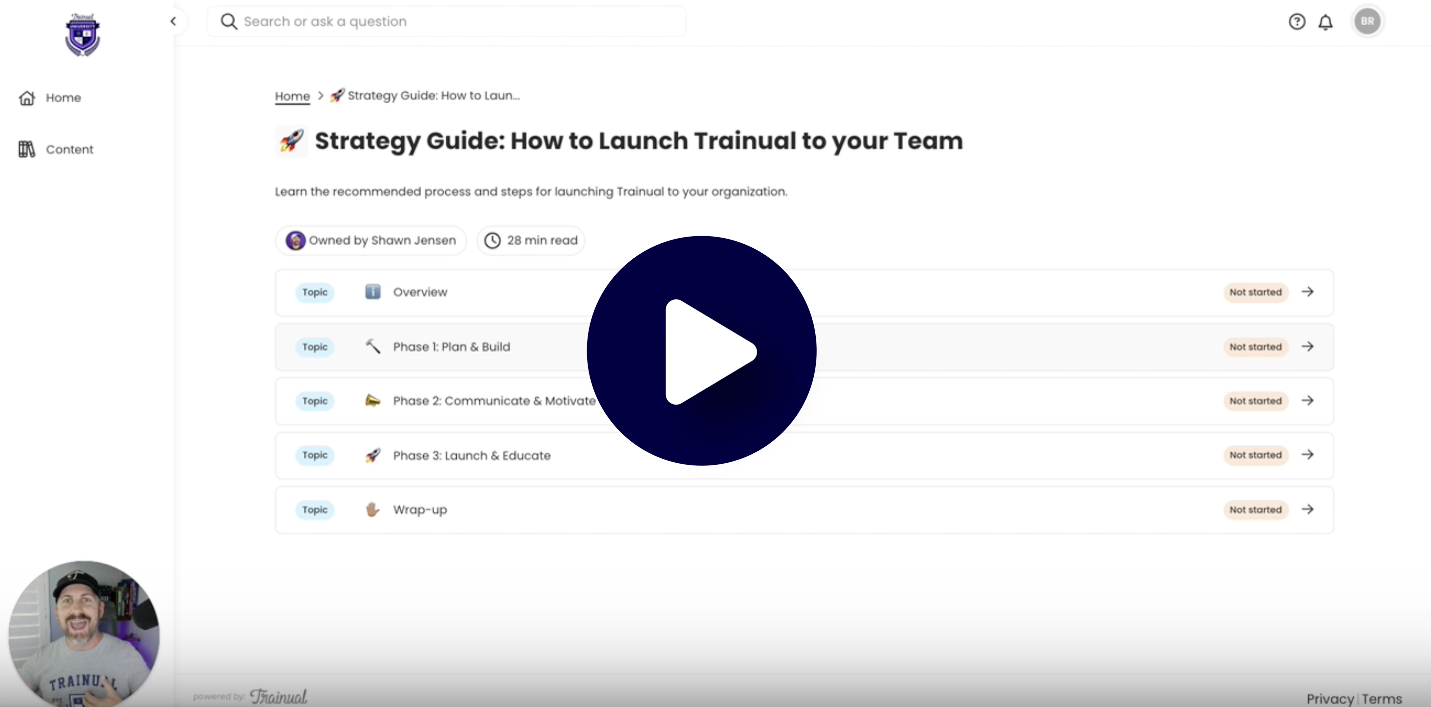 When you land in Trainual U, you’ll get the content you need based on your permission level. Plus, you’ll see extra credit courses and strategy guides (hey-yo, where are our overachievers at? 🙋) — like How To Launch Trainual to Your Team, How To Build a Content Creation Team, and more.