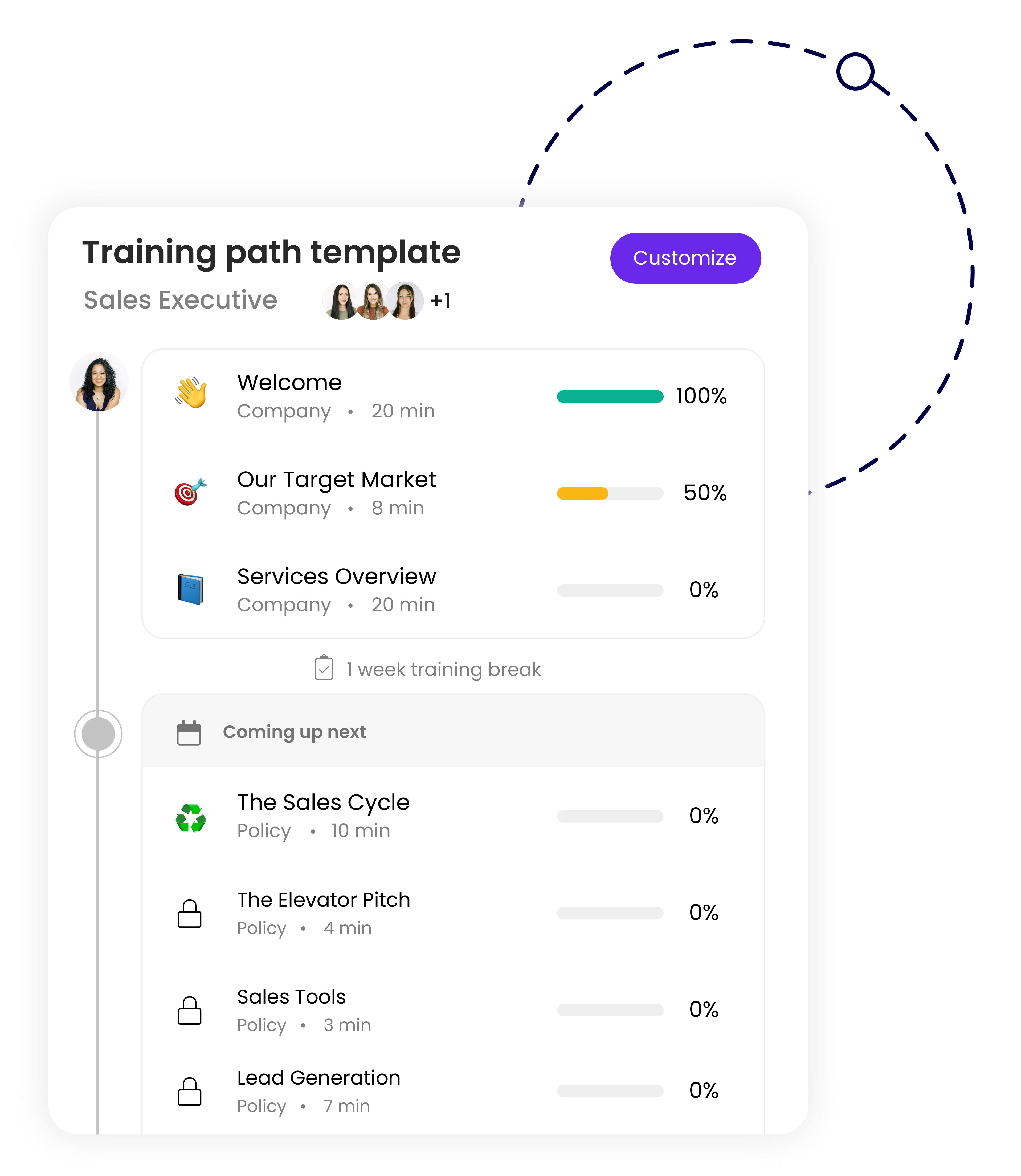 Customize the flow, sequence, and pace of learning with training paths β helping you establish an effective and consistent onboarding experience for every new hire cohort.