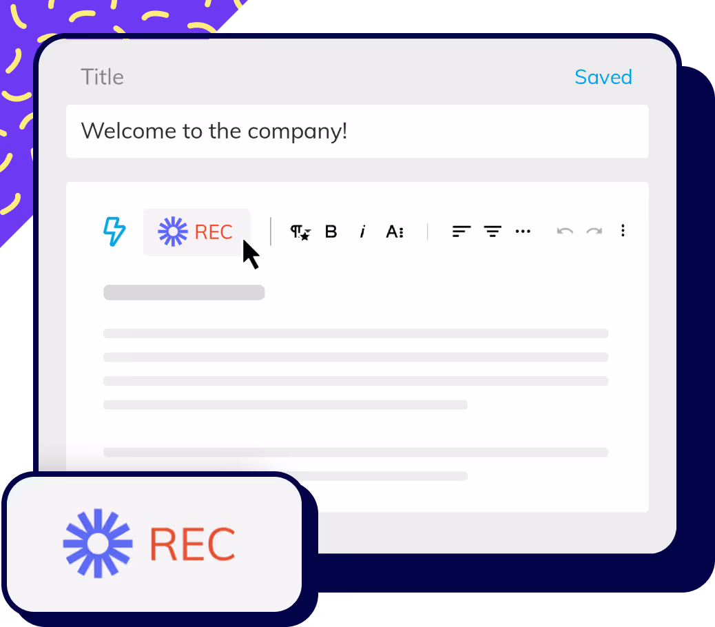 With the Trainual + Loom integration, you can seamlessly capture your screen, video, and audio – straight from the Trainual editor. And the final take will automatically embed into your training content.