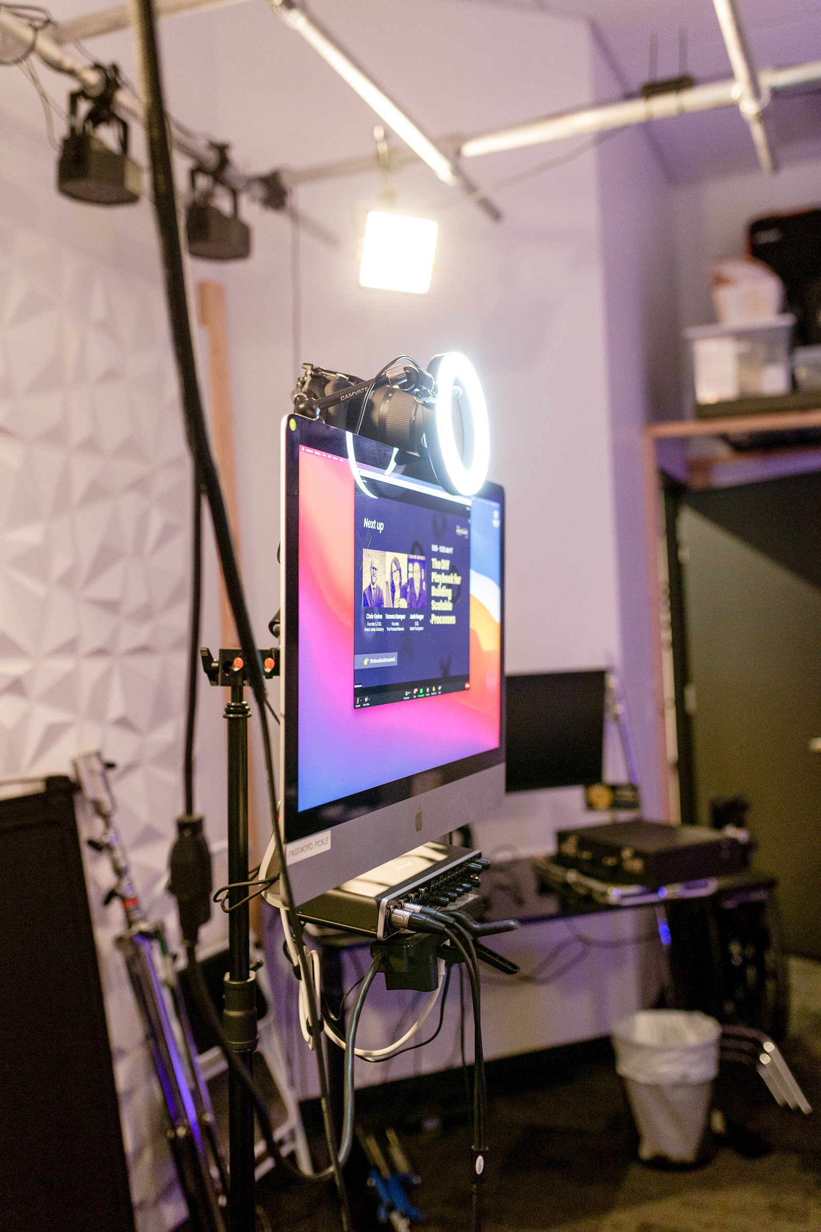 I tend to prefer a key light to a giant softbox in these scenarios because it's more compact and still gives plenty of pleasing soft light. But whichever you choose, you'll want to get a mounting solution to put the light where you want it. A desktop mount or floor light stand will do the trick!