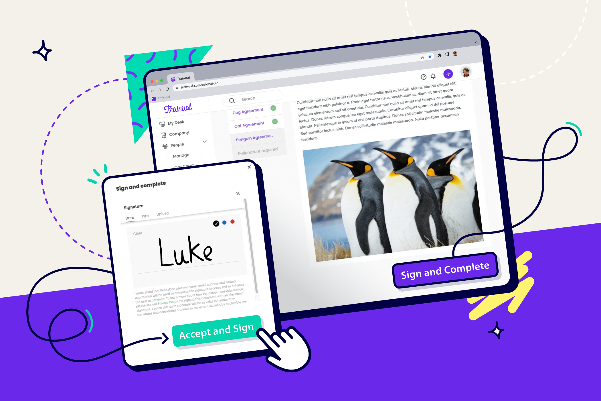 💥 Breaking news: Your training and new hire forms can finally live in the same place with Trainual’s brand new e-signatures feature. That means it’s time to throw away your outdated paper policies and get documented, digital proof that your team understands and agrees to the policies that keep them safe, accountable, and aligned. Try Trainual for free.